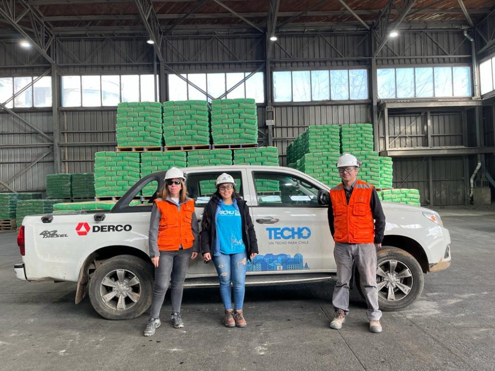 Valentina Monsalves, directora regional de TECHO en la Región del Bio Bio, por su parte, indicó: “Hoy hemos recibido una primera entrega de 160 sacos, que es una de las primeras donaciones que vamos a recibir –en el marco de este proyecto-para poder concretar el proyecto de Huella en la comunidad de La Unión 2, en los cerros de Talcahuano”.