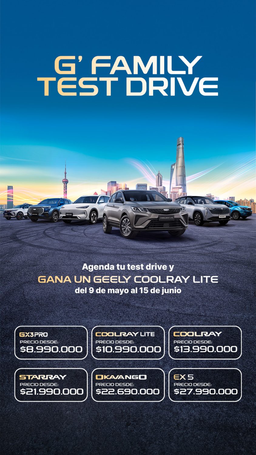 Santiago, mayo de 2025.– Con motivo del lanzamiento del nuevo Coolray Lite, GEELY Chile presentó el concurso “G’FAMILY TEST DRIVE”, una campaña especial que busca acercar aún más la experiencia de la marca a los conductores de todo el país. La propuesta es simple: quienes agenden y realicen una prueba de manejo de cualquiera de los modelos Geely en concesionarios oficiales, entre el 9 de mayo y el 15 de junio de 2025, quedarán automáticamente inscritos en el sorteo de un Coolray Lite POP 2025.